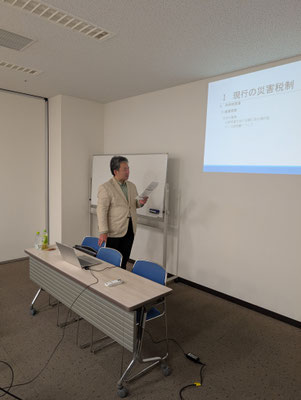 今回の研修は、「災害税制」ということで東京青税の代表の加納先生を講師に迎えての研修となります。